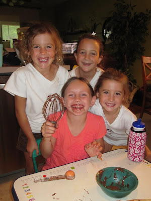Then she had another play date with these cute little twins Madison and Bailey...I don't know what got into me that day (Luke also had Carver over and Gavin had Cooper over so I already had a house full)...I think I got a second wind and suggested we make cupcakes. It made a mess of the kitchen but the girls had a blast!